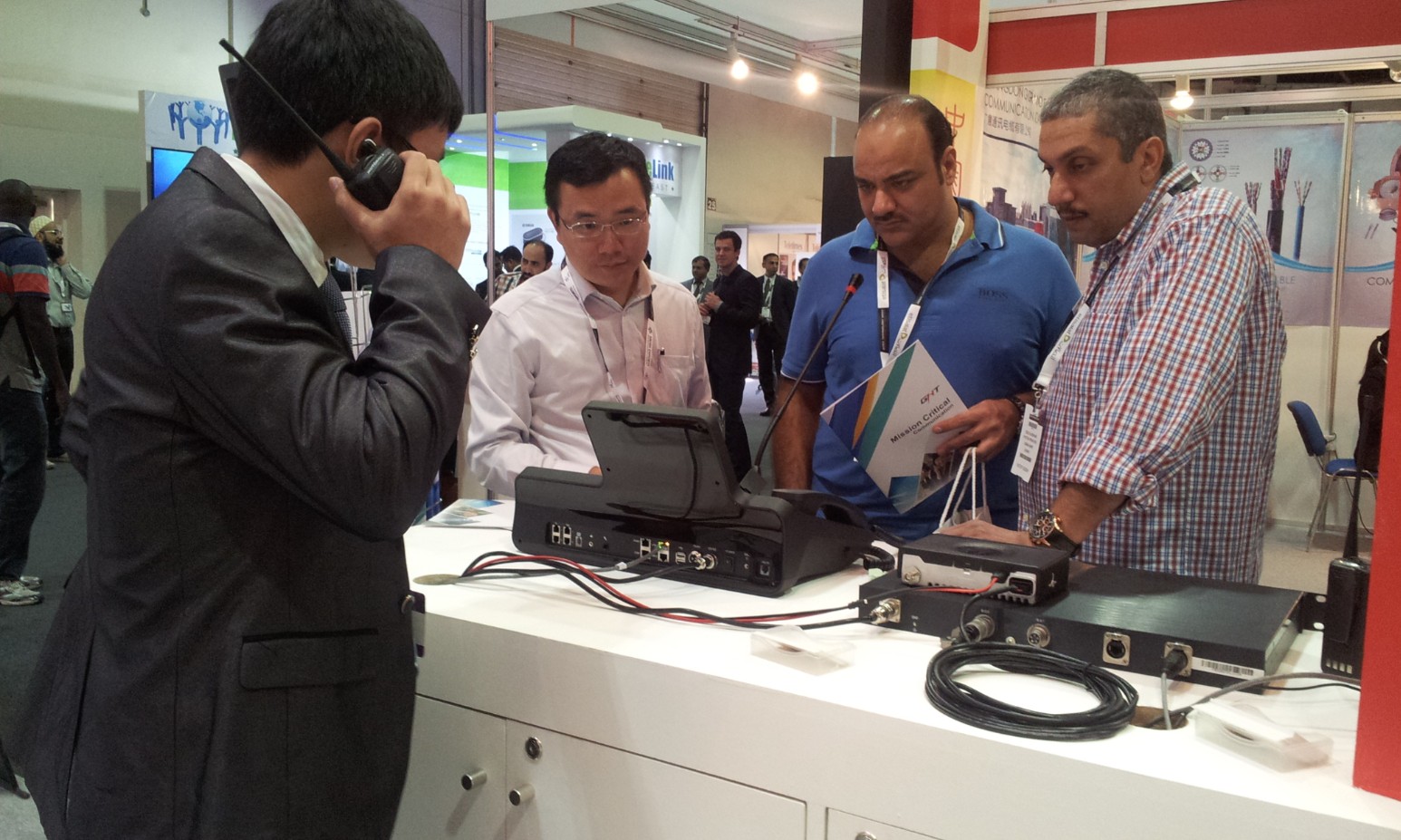 2014年10月12日,經過周詳的準備工作,廣哈通信調度指揮通信系統展正式亮相GITEX DUBAI 2014。此次展臺主題為Mission Critical Communication,所展出系統以軟交換調度指揮通信為主,并提供整體解決方案;融合傳統電路交換、視頻監控系統、無線集群系統、無線網絡延伸、移動單兵系統等。展會吸引了眾多專業客戶的眼球,特別是系統特色功能,如一鍵四屏視頻會議集成,將各種視頻源集成一體,以及高清視頻話機特色功能,如超大屏幕、Andiron系統、雙模雙待、WIFI無線連接等,獲得客戶的高度評價。